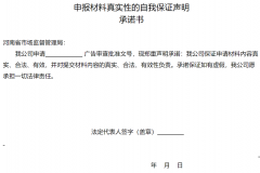 申報材料真實性的自我保證聲明承諾書,河南省市場監(jiān)督管理局: 我公司申...
