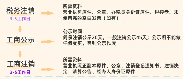 | 簡易注銷 | 無經(jīng)營、無異常 | 20天 | ≈1個月 | 800~1500元 |
